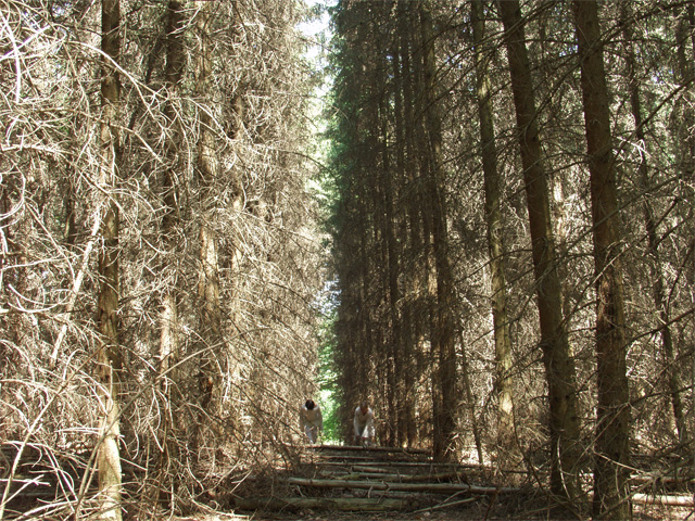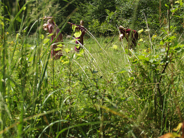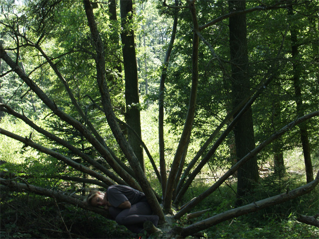 Fugitive Refrains is a video conceived and produced collaboratively by media artist Mariam Ghani and Butoh-trained dancer/choreographer Erin Kelly during a residency at Akademie Schloss Solitude in Stuttgart, Germany. It was developed for, performed, and shot on HDV in six specific sites in the Solitude Rotwildpark forest in summer 2006, and will premiere at the Akademie in spring 2007.