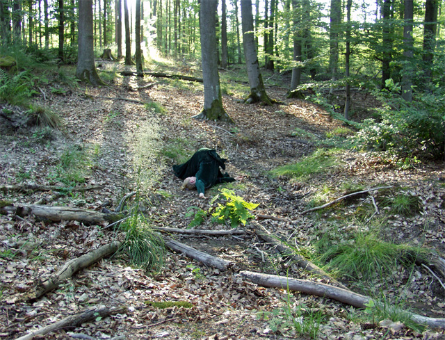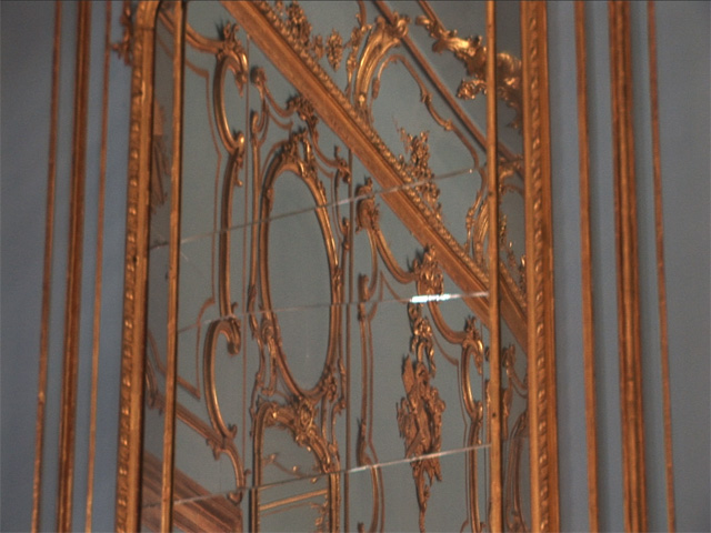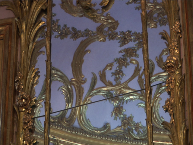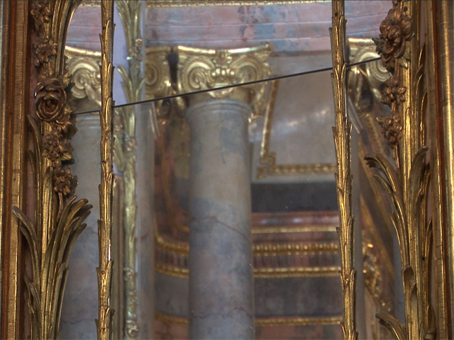 Our project explored the forest as it is today for traces of the garden that once was projected onto it. We looked for sites where the landscape still remembers the human desires that shaped it and the pleasures once pursued there, and where the artifice of design has decayed into an almost-natural order. In these sites we used movement to outline the forms of what was or what might have been, the ruins of a plan now perceptible only in peripheral vision, working with ideas of movement drawn from the Rococo aesthetic - playing with perceptions of figure and ground, and embodiment between human and natural. We also shot the ornamental forms and figurations of nature in the interior architecture of the Schloss, in order to create an interplay onscreen between mirrors and echoes, nature and artifice, faux and real.